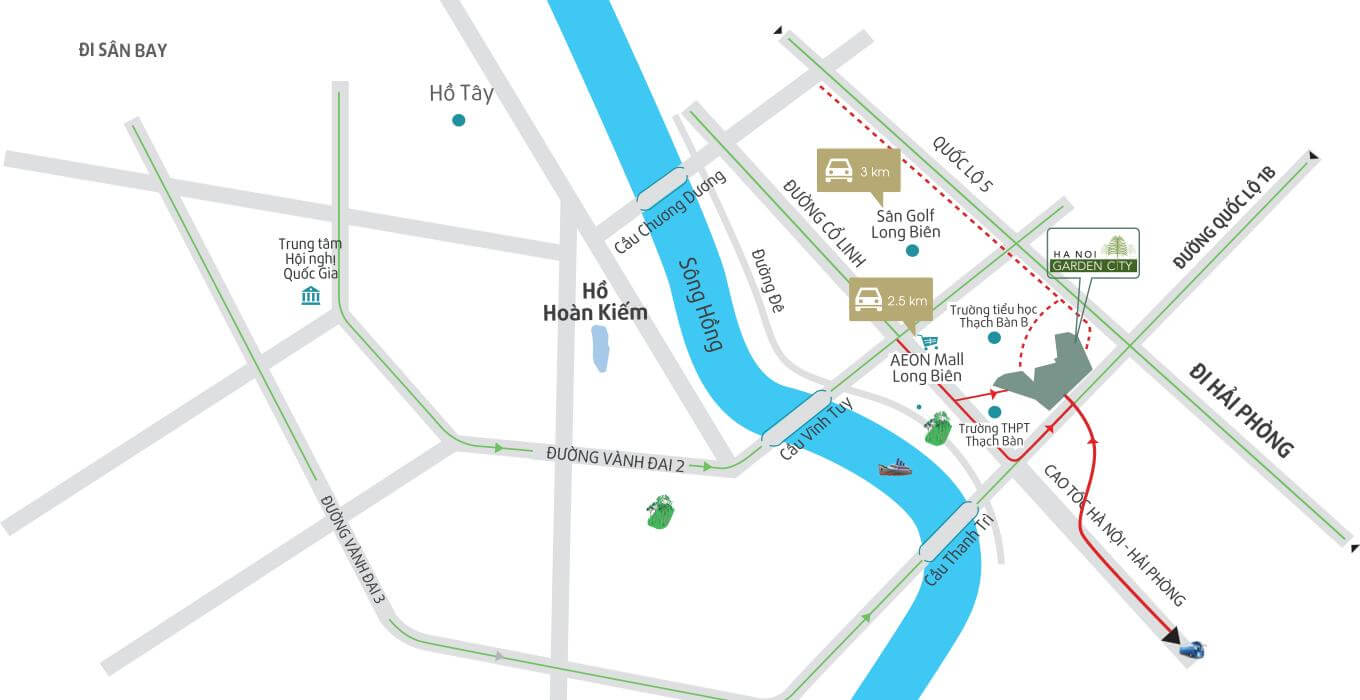 | Sân Golf Long Biên - 3.5km - 7 phút |